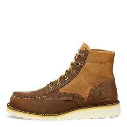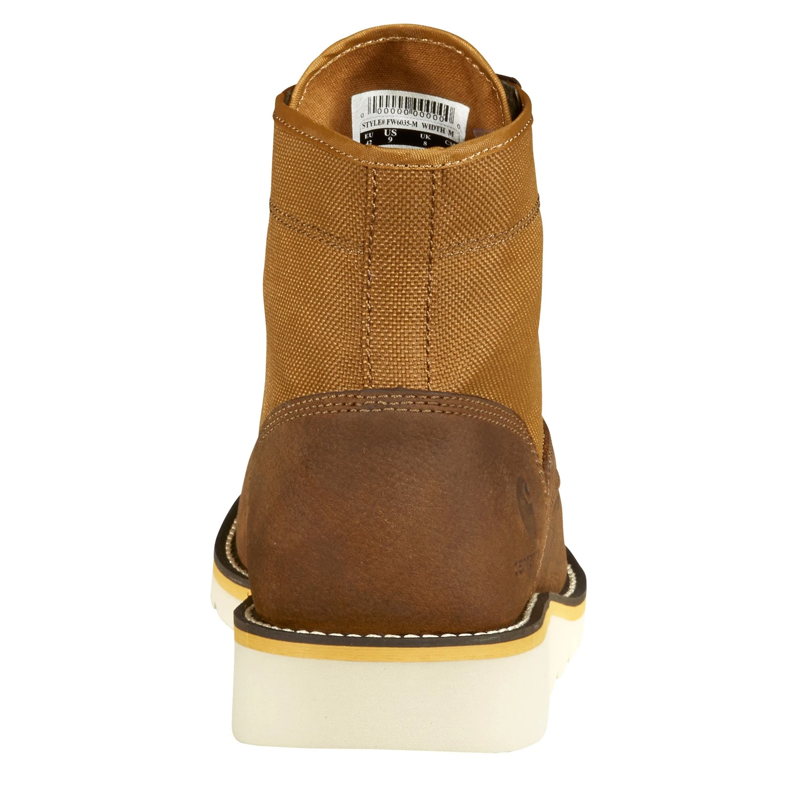 Men’s Carhartt, 6 Inch Moc Soft Toe Wedge Work Boot. Built to withstand long work days, this 6 inch wedge boot is made of premium leather and designed with a moisture-wicking FastDry lining to keep you comfortable even on the toughest jobsite. They also come with a well-cushioned insole that will keep you steady on your feet with less aches and pains.