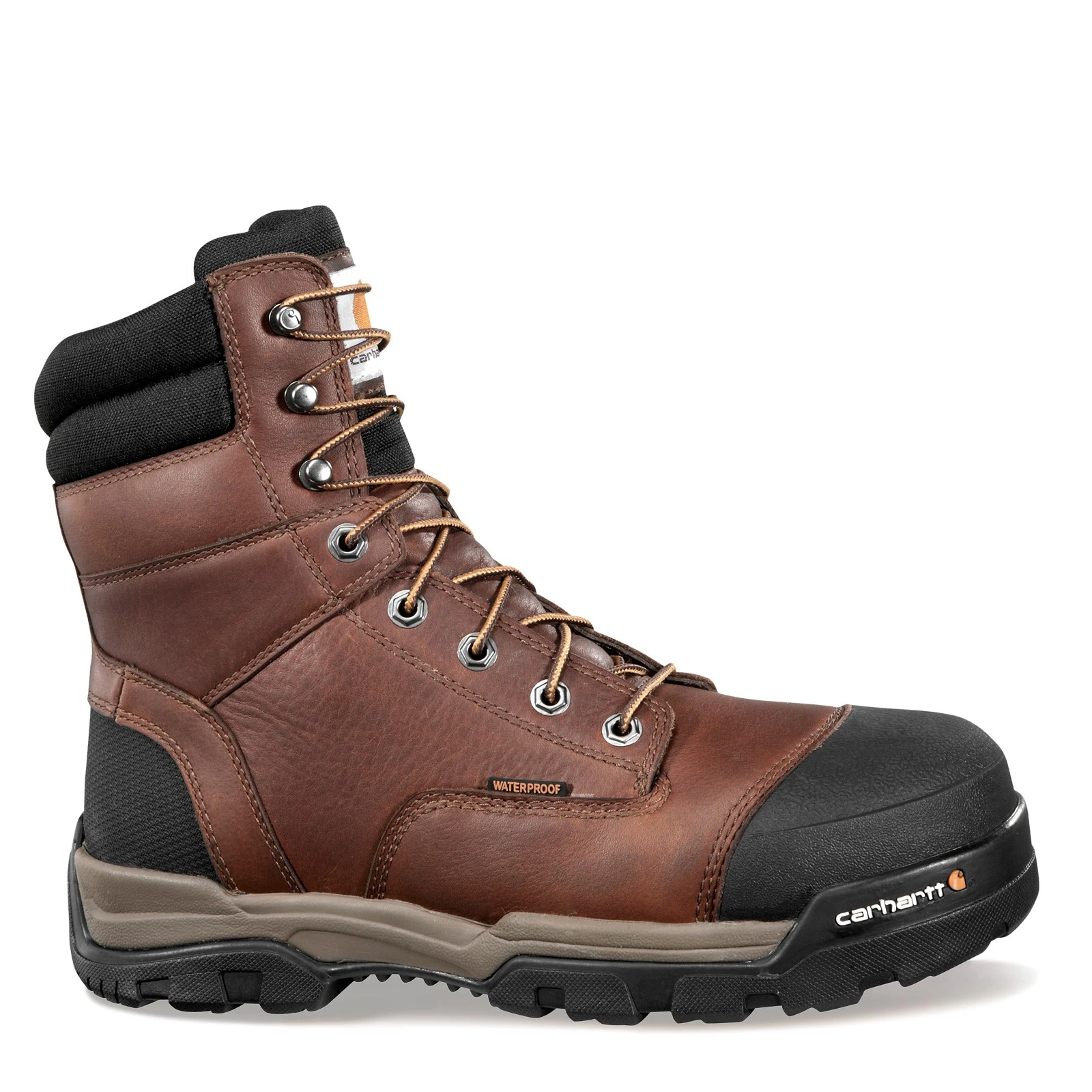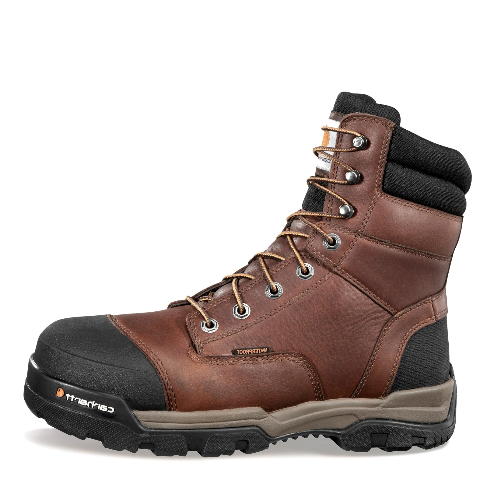 Men’s Carhartt, Ground Force WP 8 in CT Boot. Stay cool and dry all day with sweat-wicking FastDry linings and breathable Storm Defender waterproof protection. Work-ready rugged leather with reinforced rubber piecing on the heel and toe so you can take on those heavy-duty jobs without worrying about your feet.