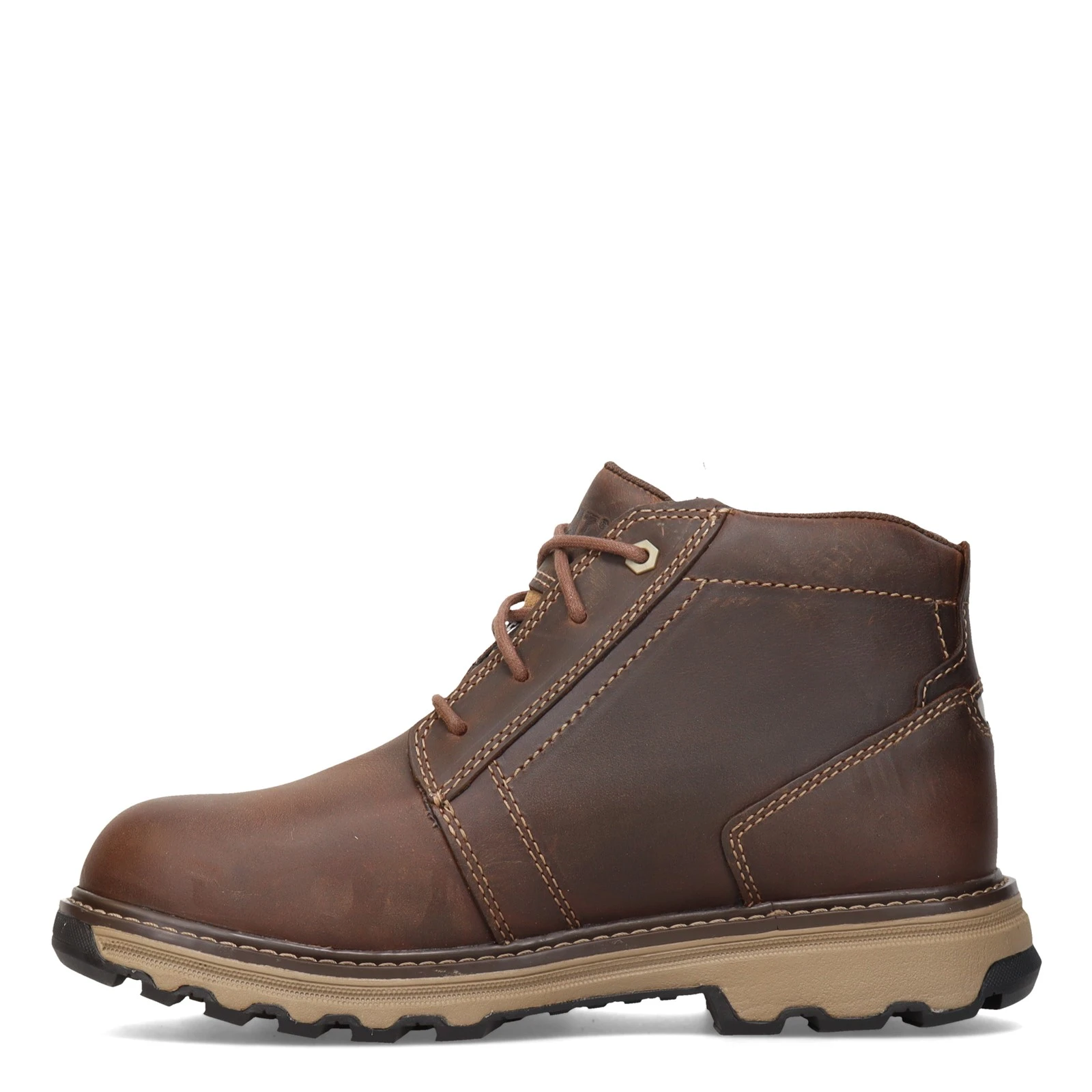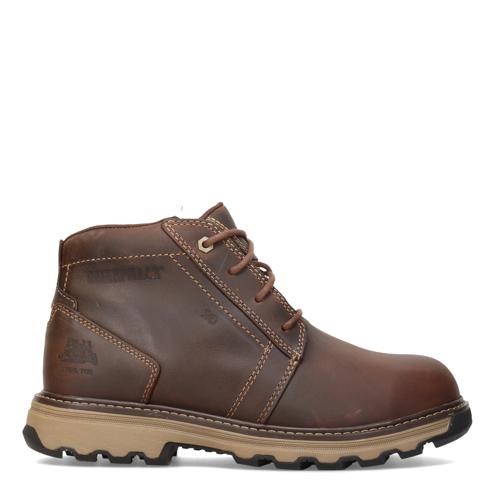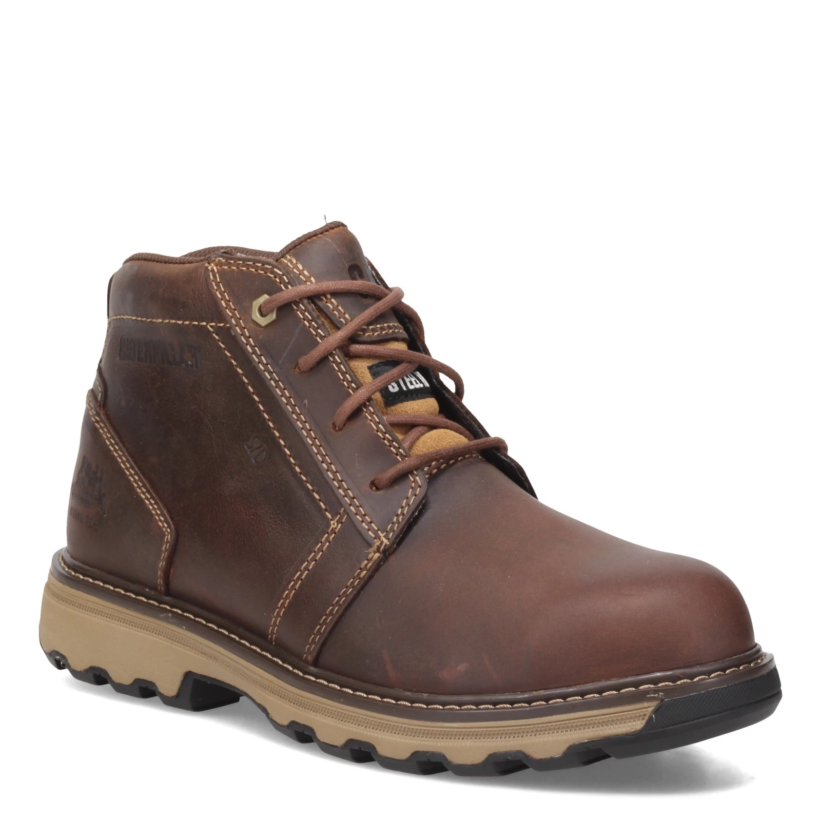 Men’s Caterpillar, Parker Steel Toe Work Boot. Working hard shouldn’t mean being uncomfortable. The Parker steel toe work boot is full grain leather and durably constructed with EASE technology, slip resistant properties and a nylon mesh lining to wick away sweat while you’re on the job.
