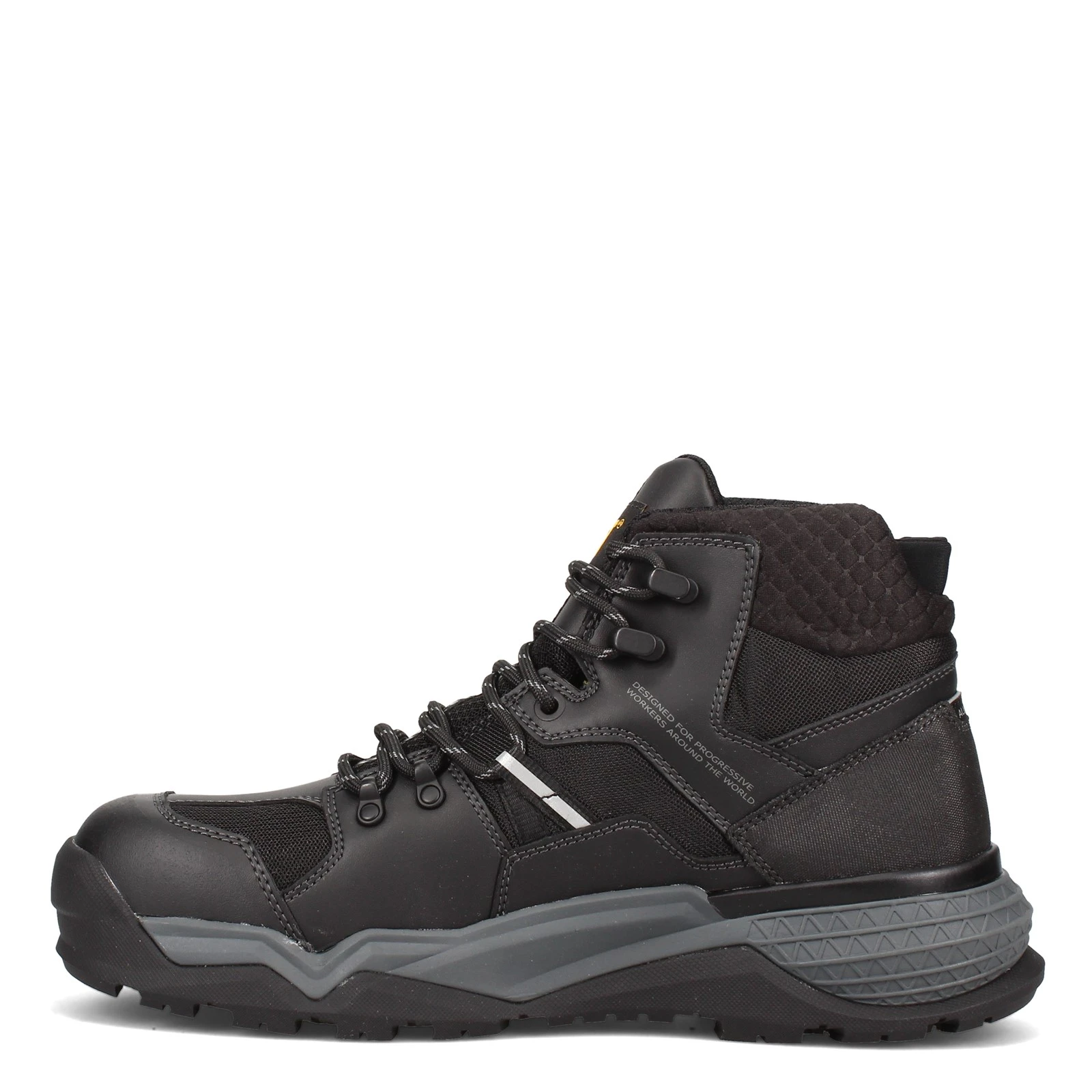 Men’s Caterpillar, Provoke Mid Alloy Toe Work Boot. This athletic styled mid top work boot features LEAP Technology. Lightweight Energy Advancing Polymer (LEAP) that provides performance plus all day comfort, durable rebounding and total cushioning.