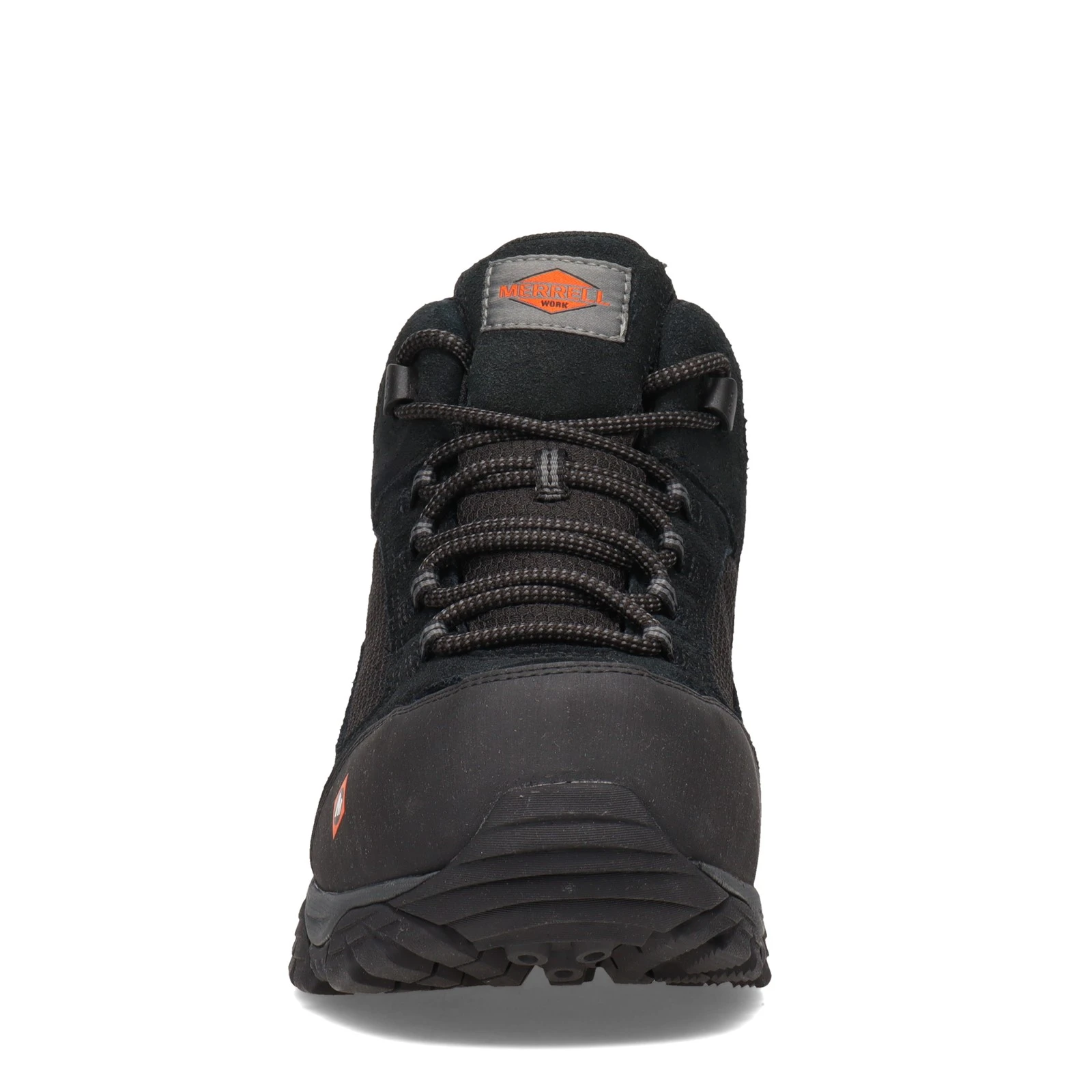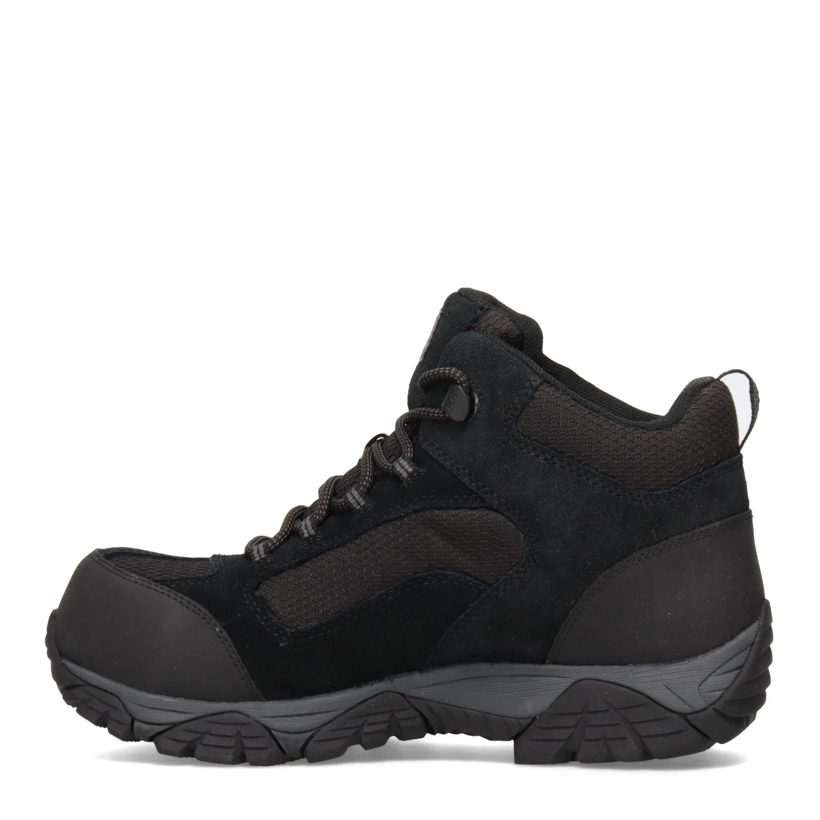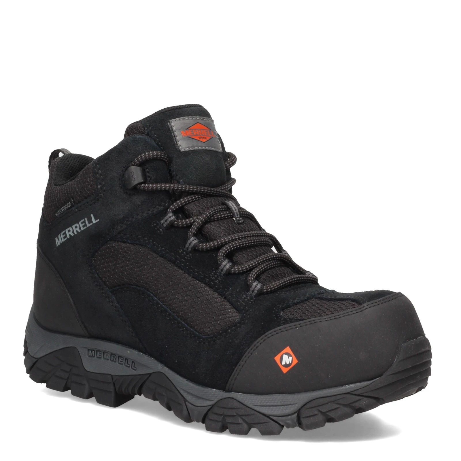 Men’s Merrell, Moab Onset Mid Waterproof Comp Toe Work Boot. MOAB stands for Mother of all Boots and this work boot is sure to keep you comfortable and protected on the job! Safety features include electrical hazard protection, a durable composite toe and an oil/heat/slip resistant rubber outsole.