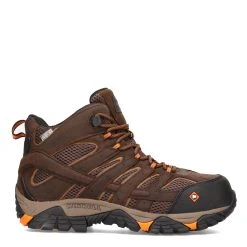 Men’s Merrell, Moab Vertex Mid Waterproof Comp Toe Boot – Wide Width. Count on these boots to protect you on the job. The waterproof uppers will keep you comfortable while the protective toe and heat, oil and slip resistant outsole will keep you safe.
