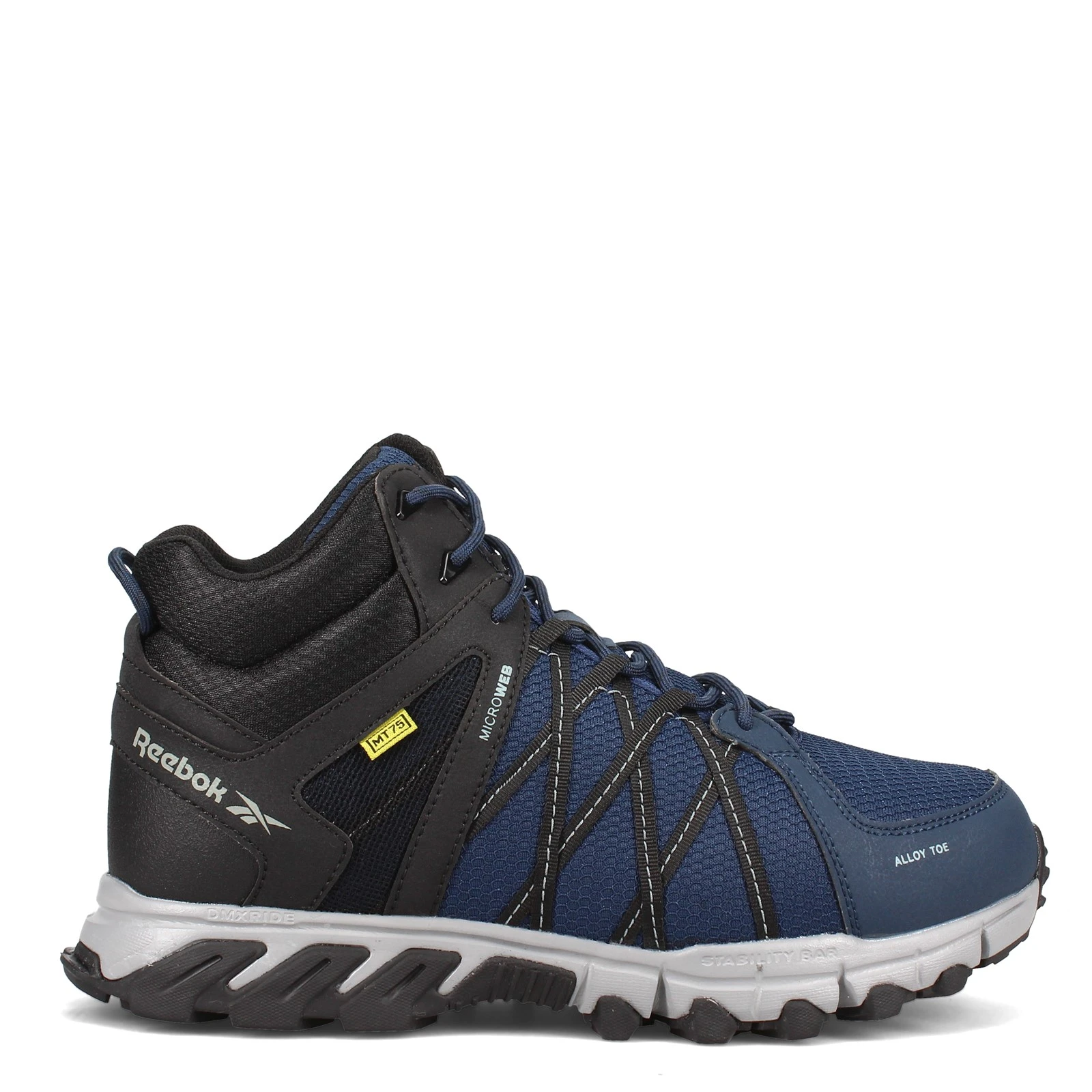 Men’s Reebok Work, Trail Grip Mid Work Shoe. This durable alloy toe work boot style has a sporty hiking shoe design and will help to keep you safe and comfortable on the job. With a top-rated slip-resistant outsole, you will be protected best against slips on wet surfaces with water /oil.