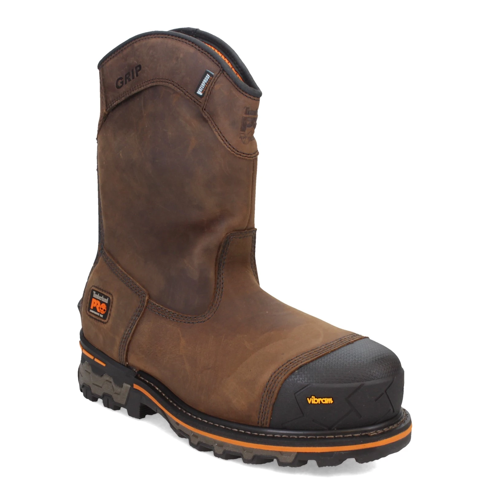 Men’s Timberland Pro, Boondock Pull-On Composite Toe Work Boot. Designed for hard work and wear, these composite safety-toe boots are waterproof, protective, and exceedingly durable.