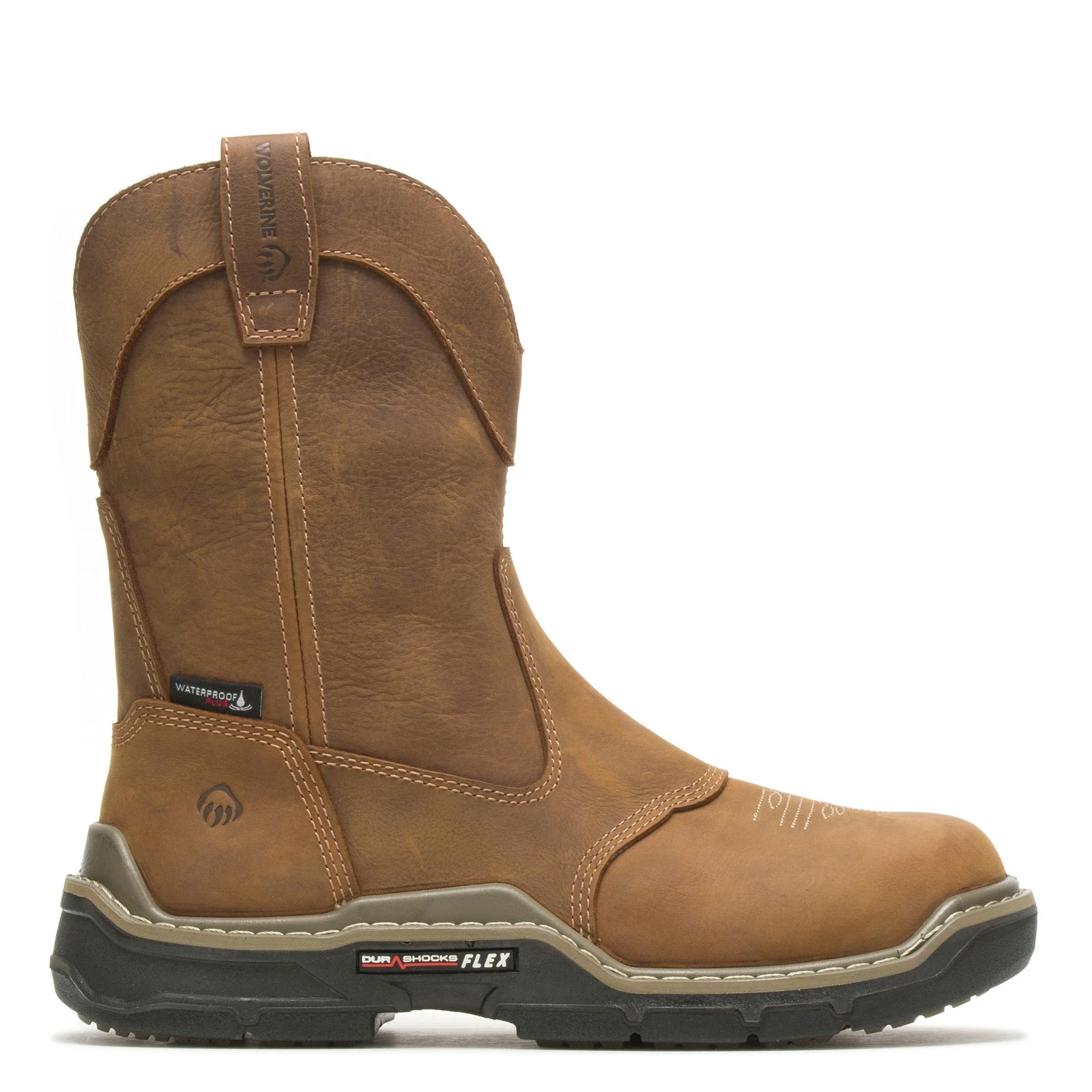Men’s Wolverine Boots, Raider Comp Toe Durashocks 10in WP Work Boot. The Raider series of work boots has been a bestseller for over 10 years! The newest boot in the series, the Raider Durashocks, offers the same great look along with a new DuraShocks Flex outsole offering amazing comfort.