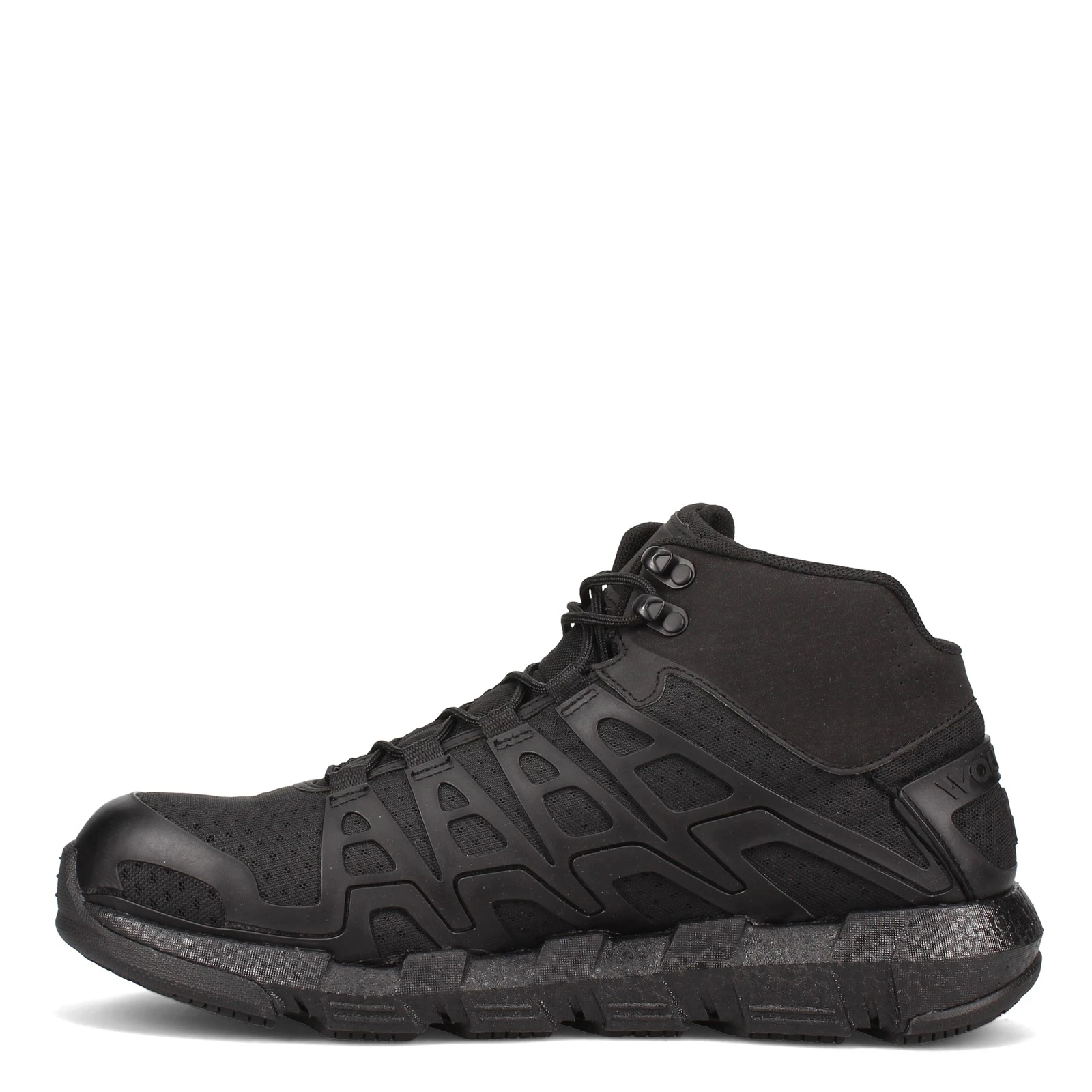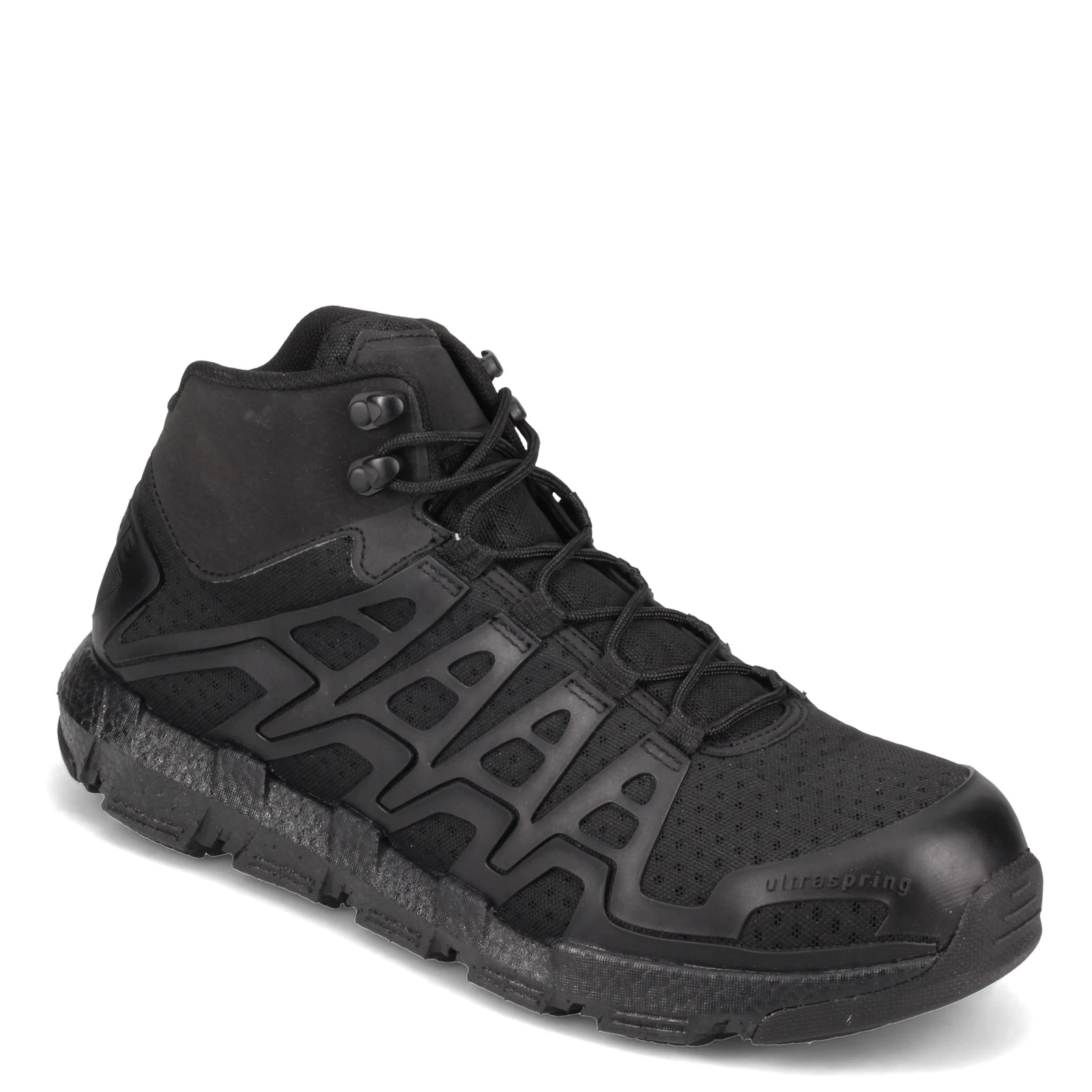 - Breathable mesh upper with supportive TPU overlays in a mid-top design