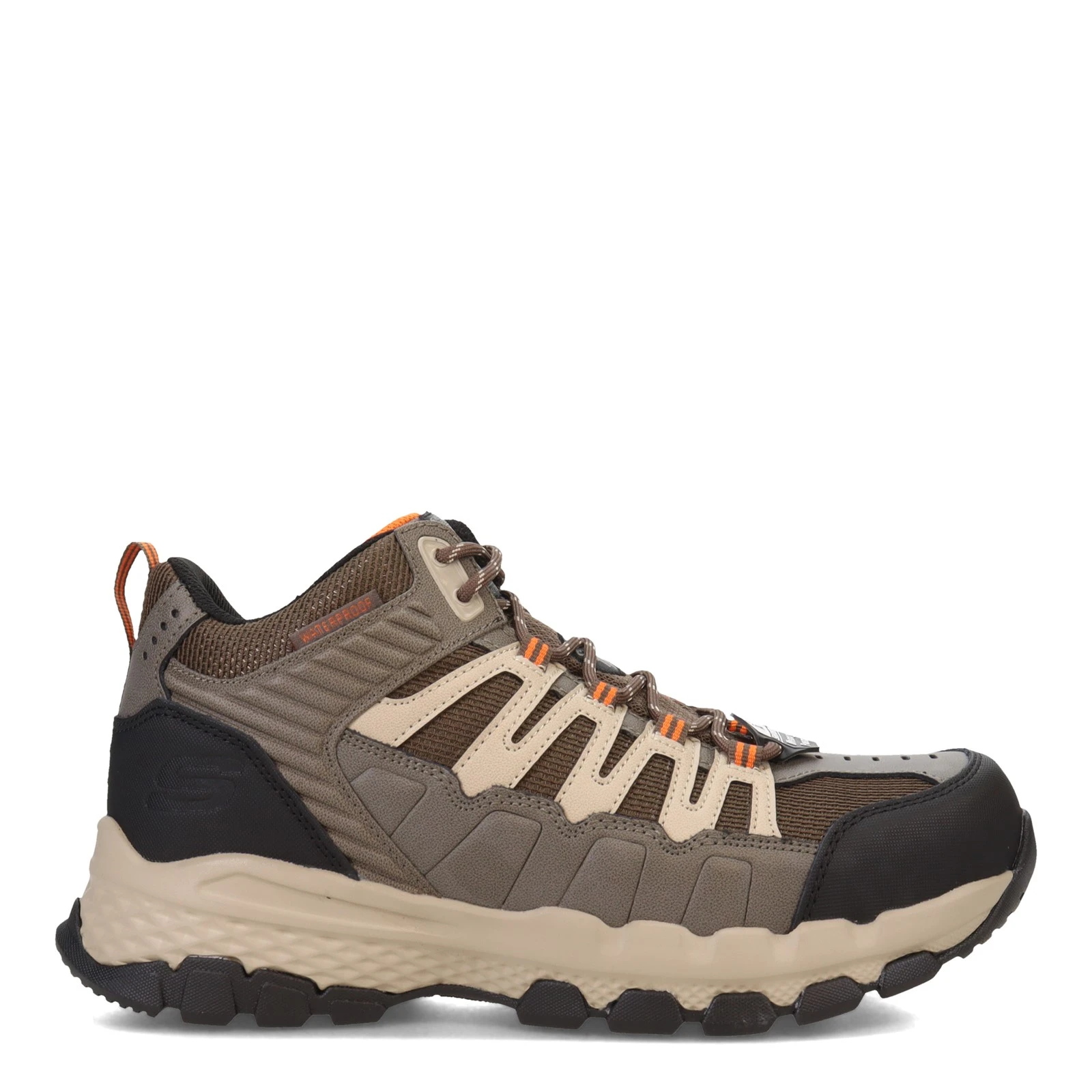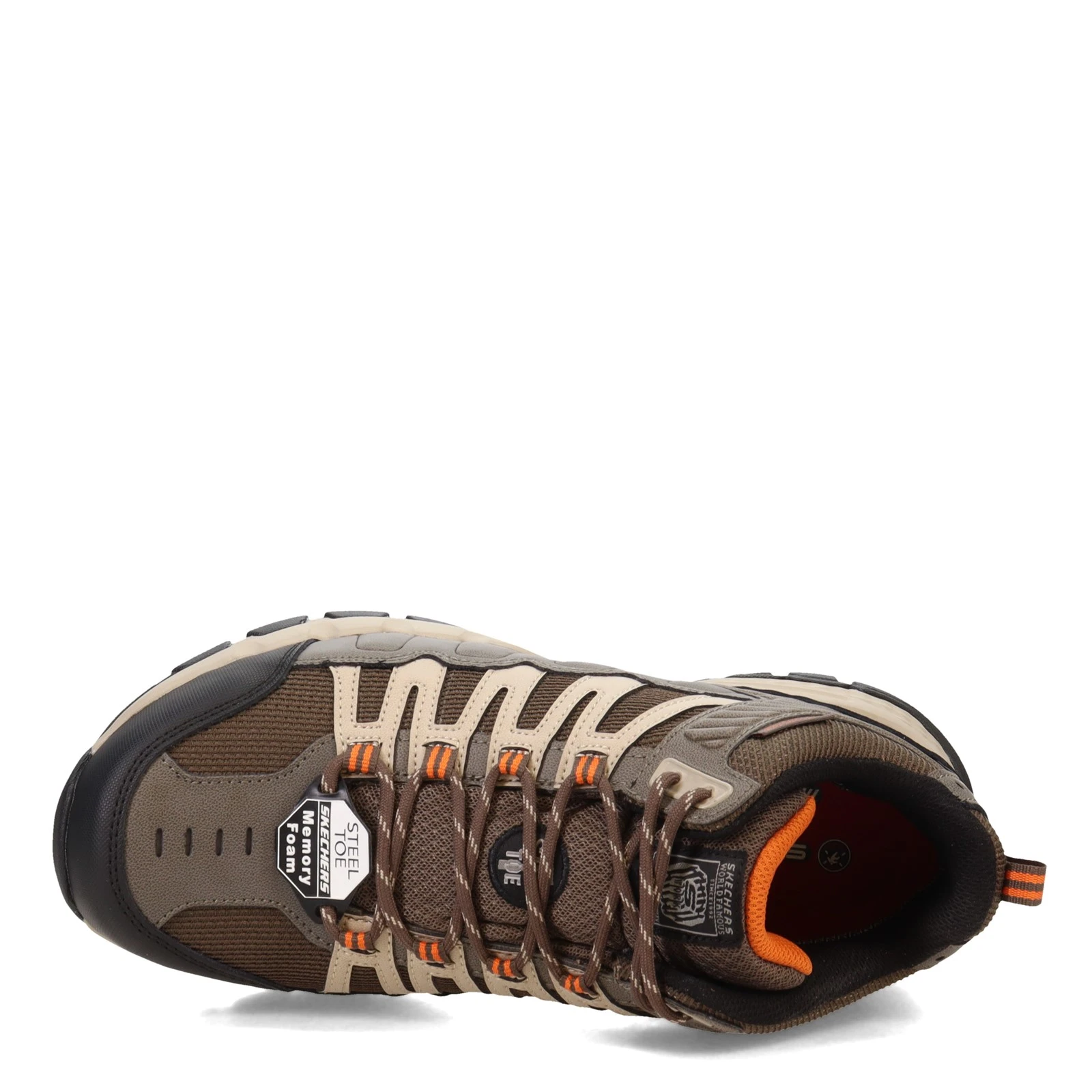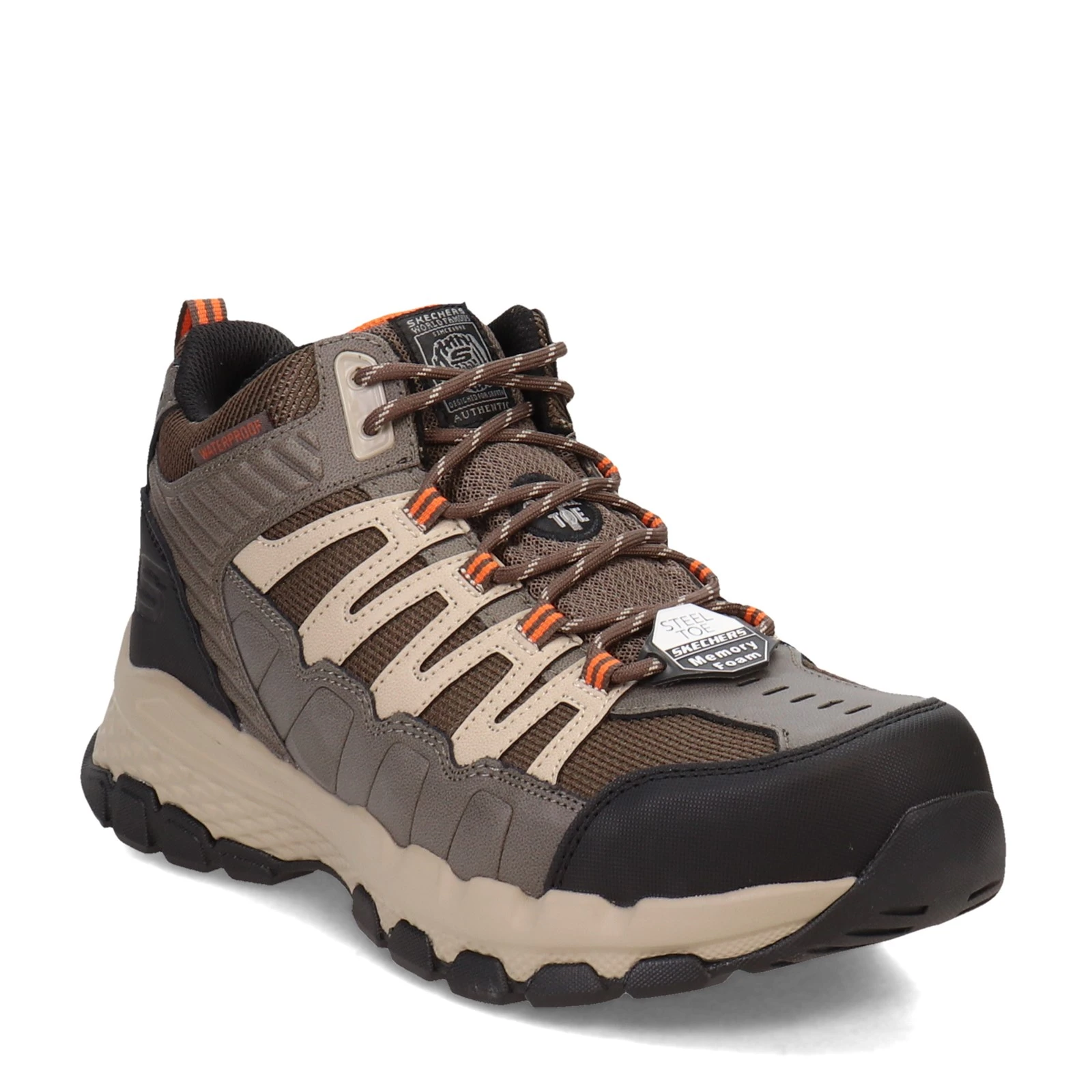 Men’s Skechers, Work: Queznell ST WP Work Boot. Workers who wear this waterproof lace-up ankle boot are treated to a full day of comfort and protection. This lace-up ankle boot features an action leather, ripstop fabric and synthetic upper with Skechers Memory Foam cushioned comfort insole. A steel safety toe allows you to work in safety and comfort.